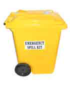 This heavy duty spill kit comes in a rolling yellow weatherproof bin with lid. Ideal for indoor or outdoor facilities, repair shops, small construction sites, warehouses.