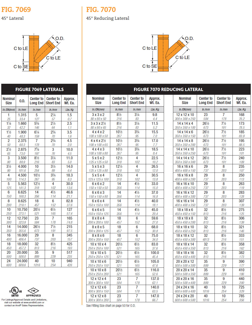 FIG. 7053 11 1⁄4° Elbow | FIG. 7050LR 90° Long Radius Elbow*| FIG. 7051LR 45° Long Radius Elbow*