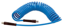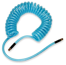 Tired of stiff, kinked or easily damaged self-storing hoses, but dislike the bulk of rubber hoses? Polyurethane Recoil is the answer. Polyurethane will bounce back again and again despite crushing or kinking. The working length of the hose is 80-90% of the actual length, and is easier to use an conventional nylon or hytrel recoil hoses, due to the superior elastic properties of the urethane. See and feel the difference.
