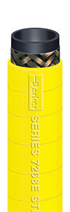 Series 7268E is a versatile, high pressure hose designed to handle air, mild chemicals, oil, and water. The hose construction incorporates high tensile wire braid reinforcement that provides durability, kink resistance, high pressure capability, and superior coupling retention. The flame resistant bright yellow cover meets MSHA requirements and is also resistant to abrasion and oil. Series 7268E provides service for high pressure air, dust suppression and water applications in construction, general industrial, mines and quarries.