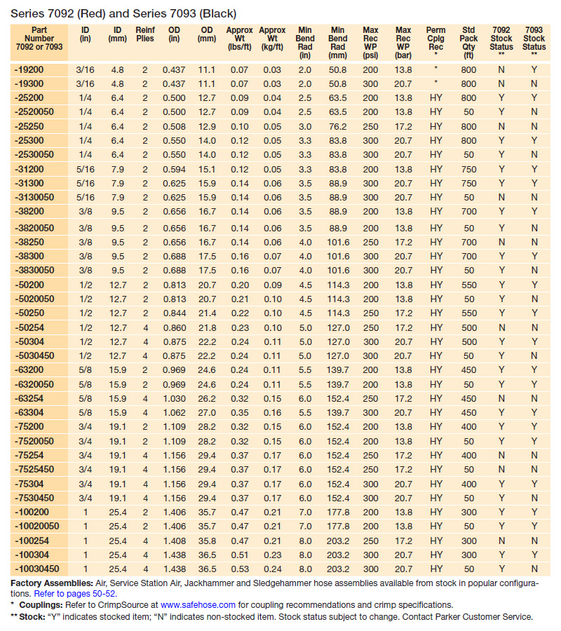 | Tube: | Black nitrile rubber compounded to resist oil laden compressed air and moderate oil services. |