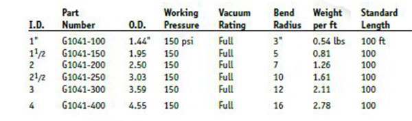 | Reinforcement: | Abrasion resistant PVC with smooth bore to eliminate material build-up. |