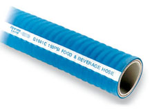 | Reinforcement: | High tensile spiraled polyester yarn with two blue longitudinal tracers to identify the hose as food grade. |