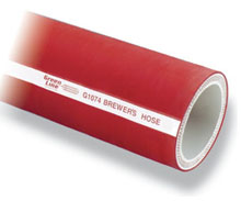 Brewer’s Hose has a butyl rubber tube and cover to withstand high alcohol content and fatty liquids. Butyl rubber also has better resistance than natural rubber to modern sterilization solutions containing mixtures of peroxyacetic acid and hydrogen peroxide. The large wall thickness on Brewer’s Hose allows it to withstand light vacuum and resist kinking.
