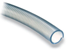 G941PS Poly-Spring uses a steel wire embedded in the hose wall to make a heavy-duty PVC suction and discharge hose suitable for a wide variety of food products. Poly-Spring will work in applications where soft-walled clear vinyl tubing and textile reinforced hoses do not provide the needed vacuum or kink resistance. Poly-Spring is used for milk, syrup, juices, wine, and food transfer applications. Its ability to withstand tight bends makes it useful for water lines in boats where space is tight.