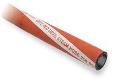 Red Devil is manufactured using layers of high-tensile spiral wire for extra flexibility and with a heavy, wrapped cover for durability. It is rated for saturated steam to 250 psi and is our most popular steam hose for heavy industrial applications.