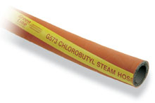 Chlorobutyl rubber has excellent heat resistance and is less permeable to gases than other synthetic rubbers. These characteristics provide for a steam hose with improved life expectancy. Not only does the tube compound not age so quickly, but it absorbs much less steam. When steam hoses cycle from hot to cold, the steam that has been absorbed into the steam hose tube condenses. When it is suddenly re-heated, the water can vaporize and cause tiny "explosions" into the tube. The result is an effect called "pop corning" where the hose bore appears to have bubbled. Chlorobutyl rubber has improved resistance to this effect.